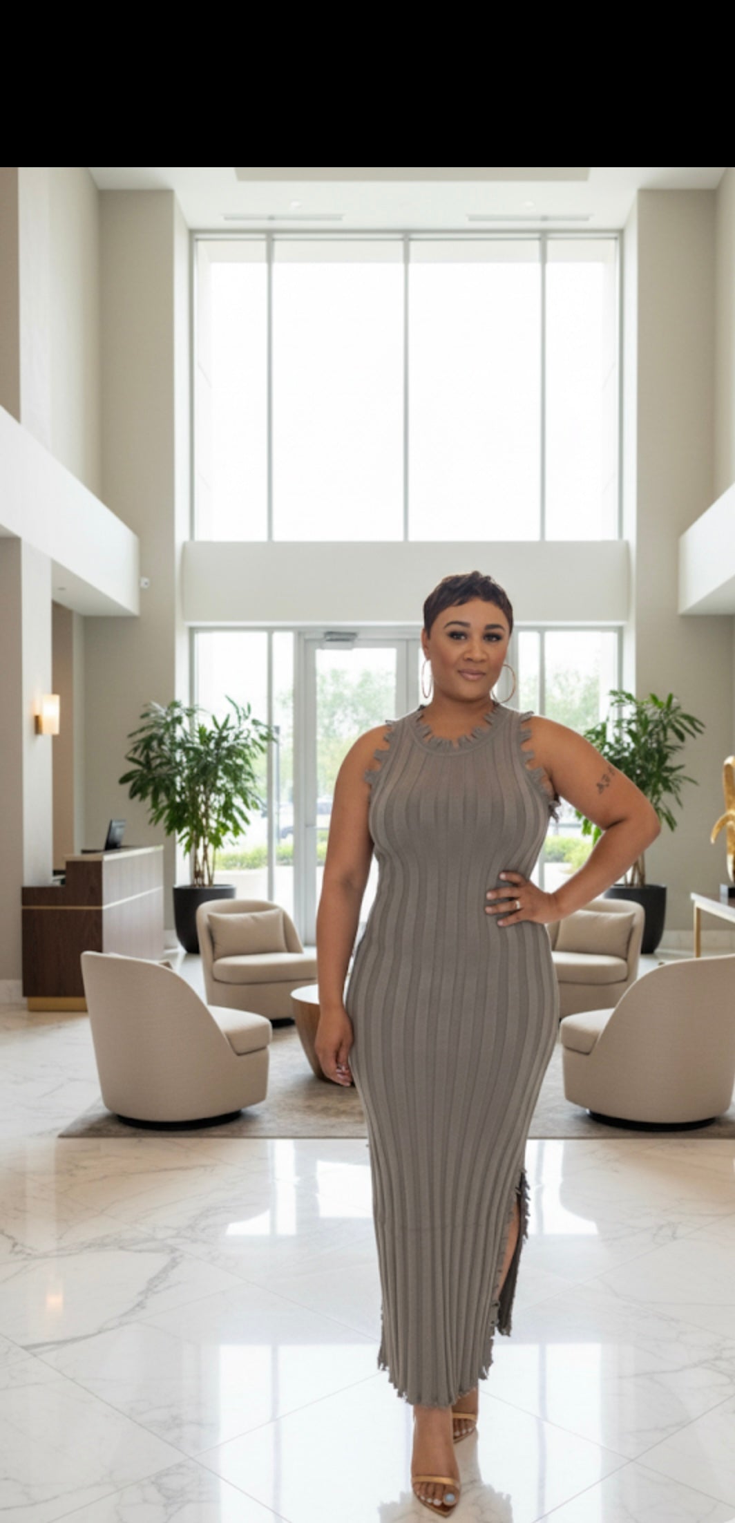 Material is stretchy. Dress with matching sweater/ jacket .Model is wearing a size large.